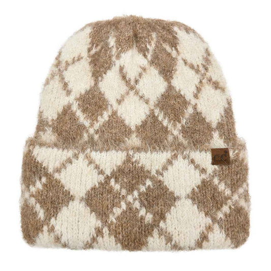 Argyle Pattern Warm Knit Cuffed Beanie