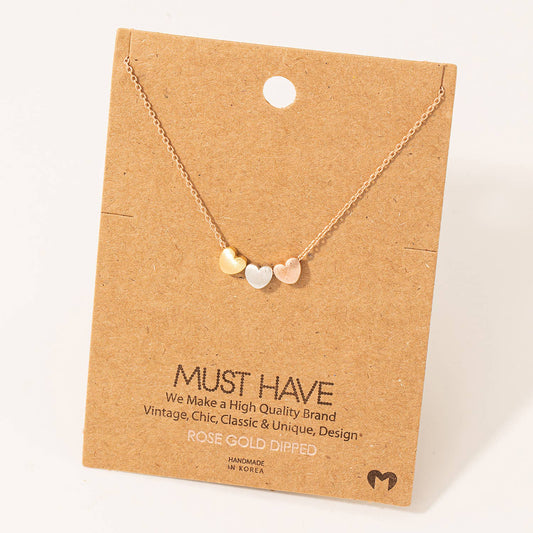 Dainty Three Heart Pendant Necklace