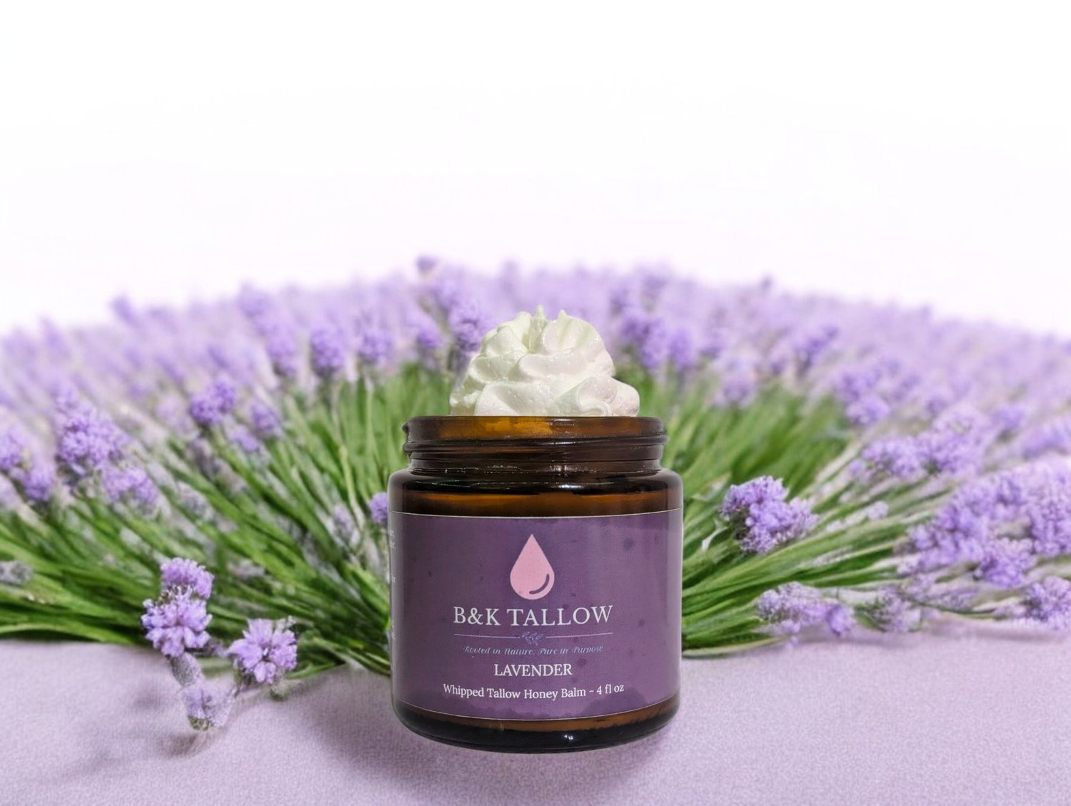 Soothe your skin and calm your senses with our Whipped Tallow Honey Balm – Lavender. This all-natural, multi-purpose balm is crafted with a nourishing blend of grass-fed beef tallow, raw shea butter, cold-pressed avocado oil, raw honey, and lavender essential oil. Every ingredient is thoughtfully selected to deliver deep hydration, promote skin repair, and provide a calming, aromatic experience.