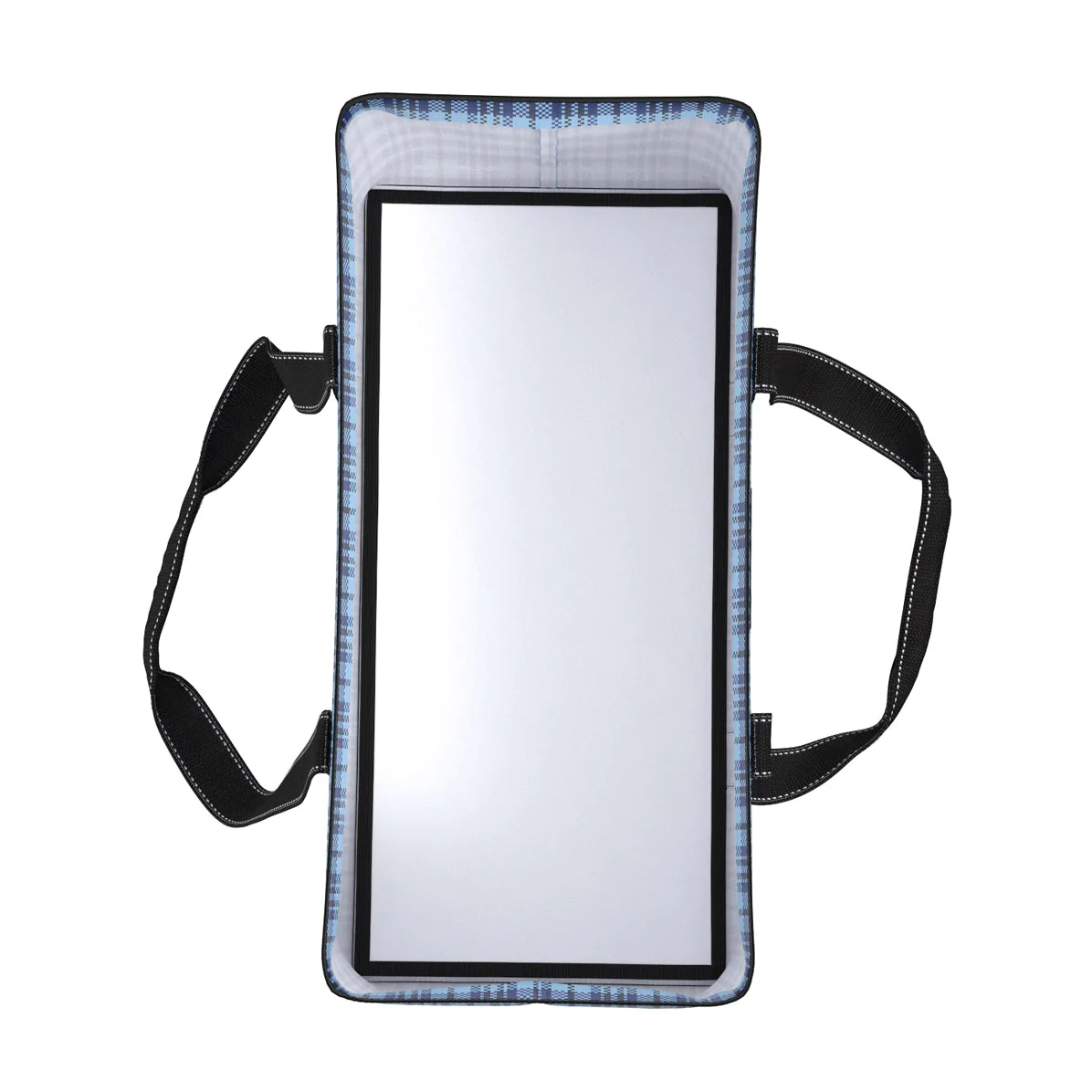 This big, horizontal bag, featuring a wire-reinforced top edge for structure, has an irresistibly smooth, soft, pliable feel and no hard edges in sight. Comfortably carry or store towels, blankets, sports gear, clothing, you name it. Compresses flat.