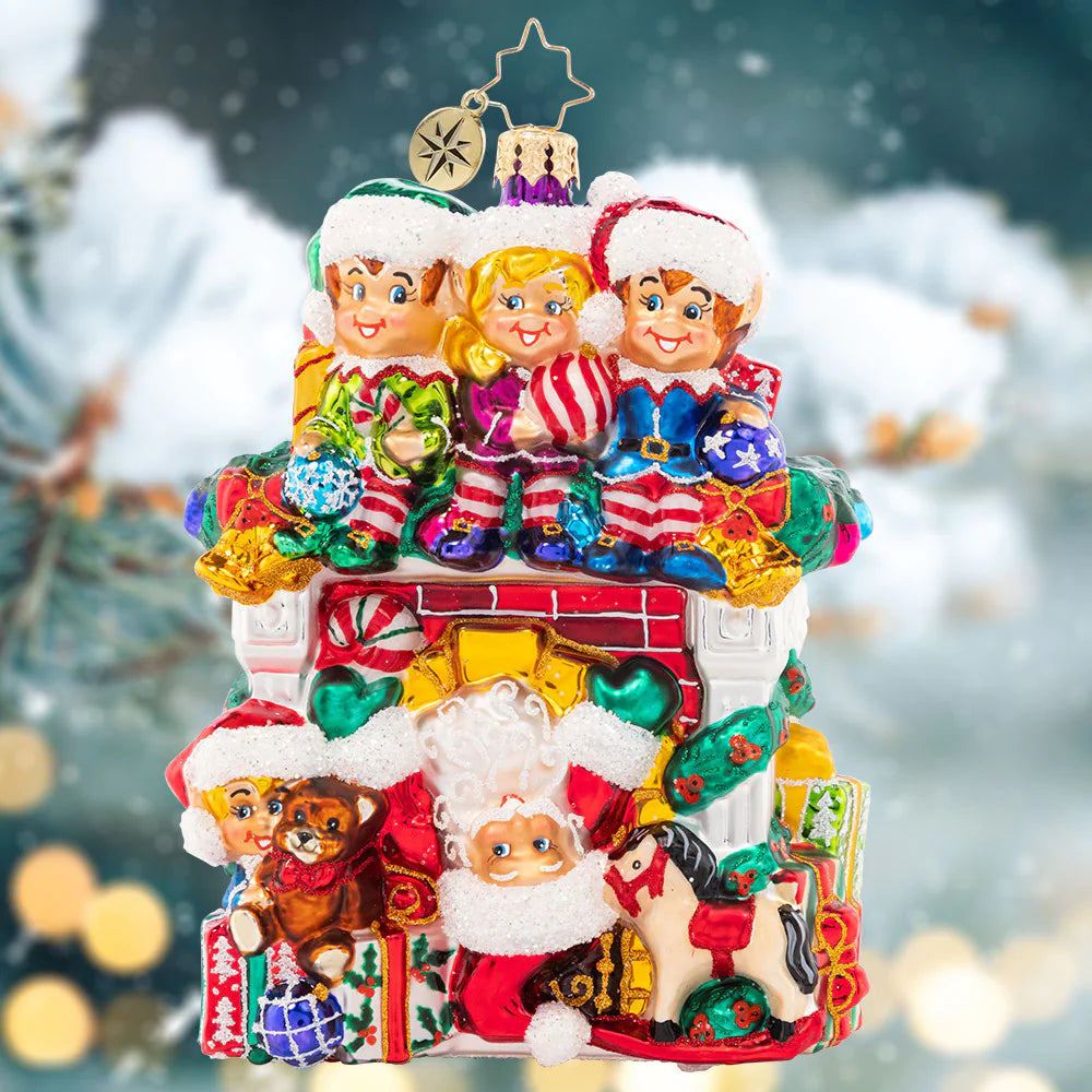 Santa has all hands on deck this year – with a team of Christmas elves ready to help him spread cheer! This cozy fireplace is bedecked with gifts galore, making an adorable addition to your collection.