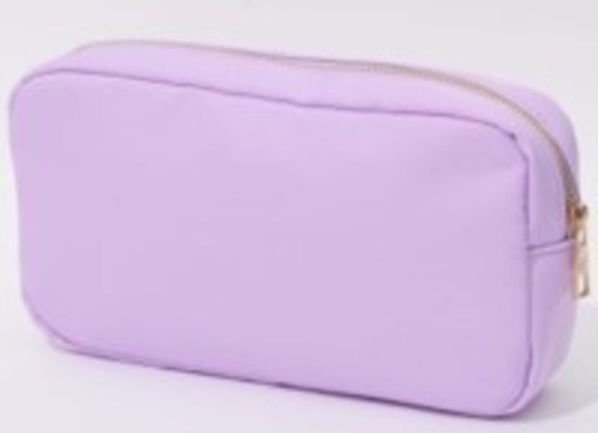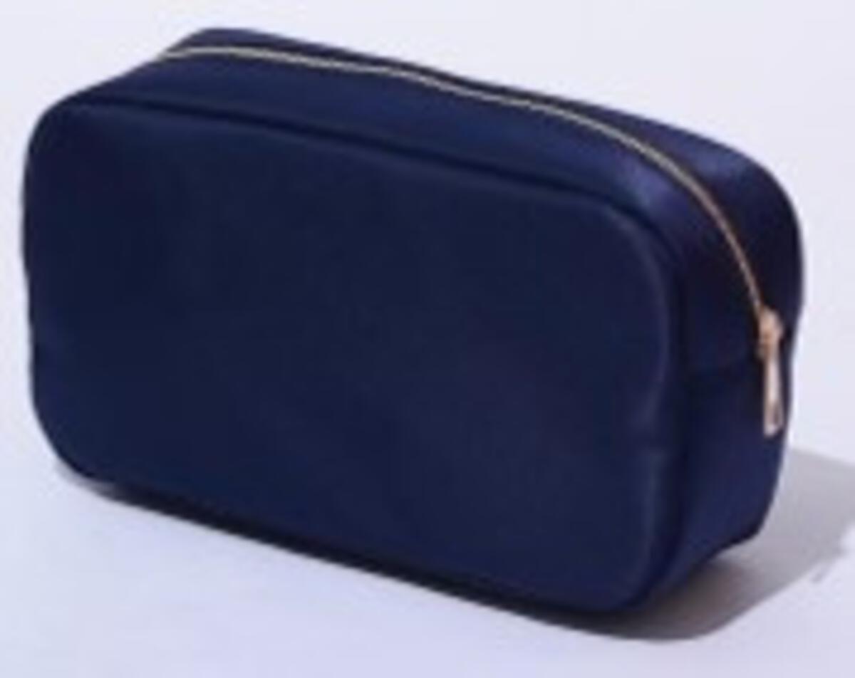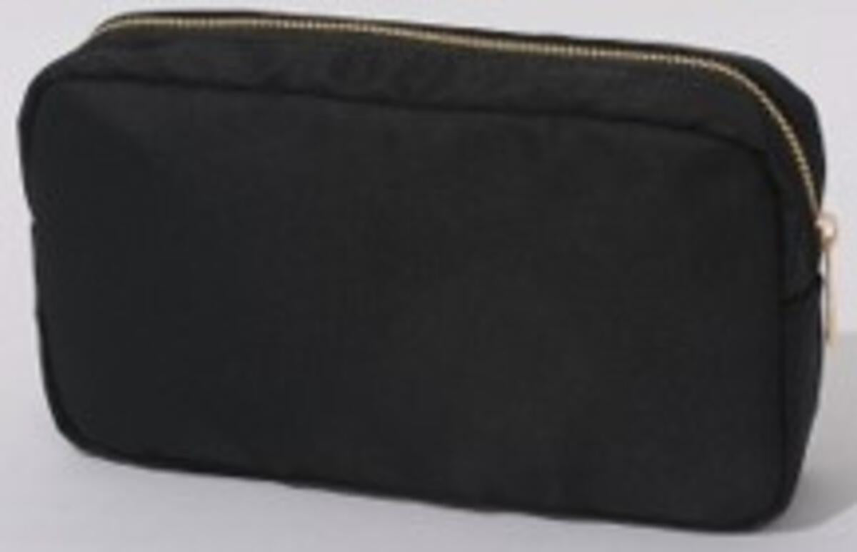 Medium, Nylon, Zip at top, Gold Metal Hardware, Lined inside. Measurements: Height: 5" Length:10" Depth:3"