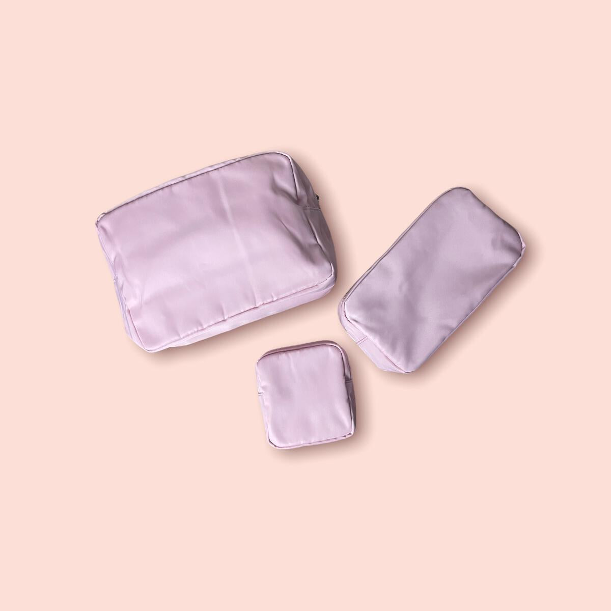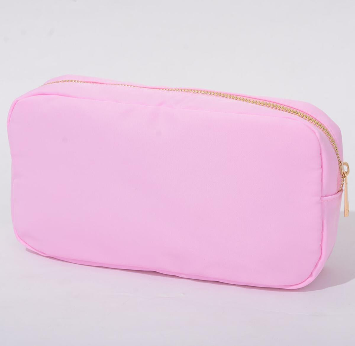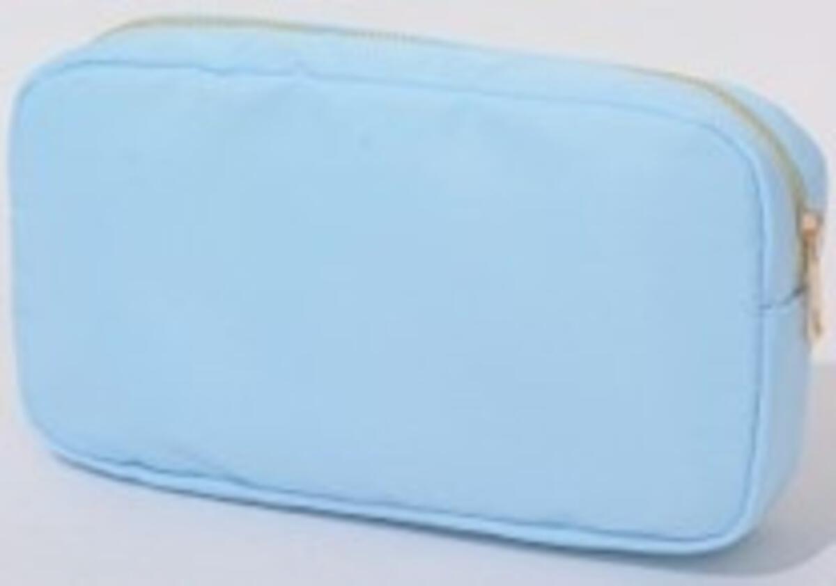 Medium, Nylon, Zip at top, Gold Metal Hardware, Lined inside. Measurements: Height: 5" Length:10" Depth:3"