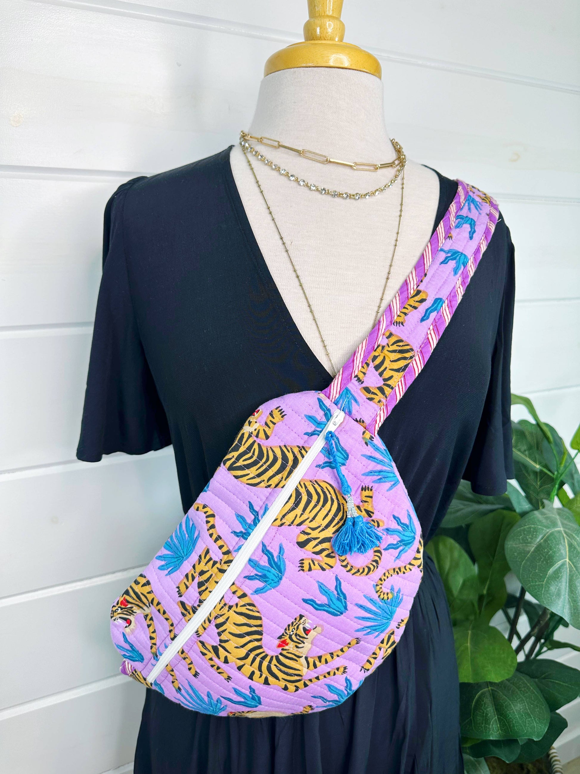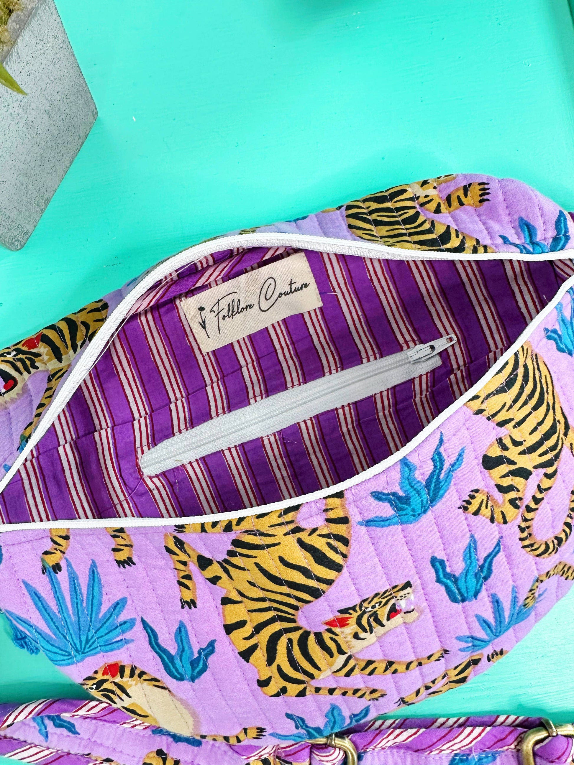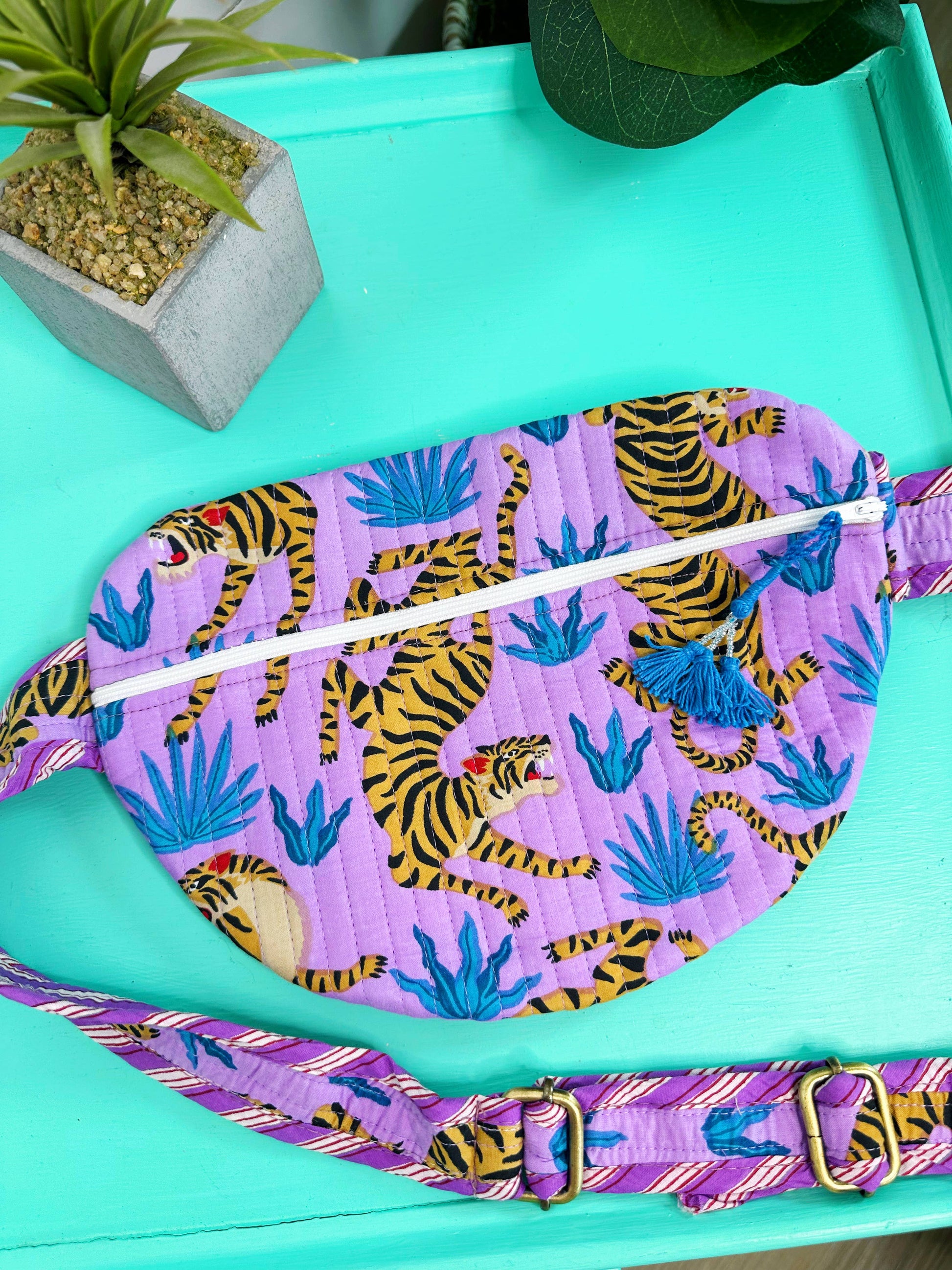Quilted Belt Bag | Crossbody Fanny Pack Bags | Purple Tigers