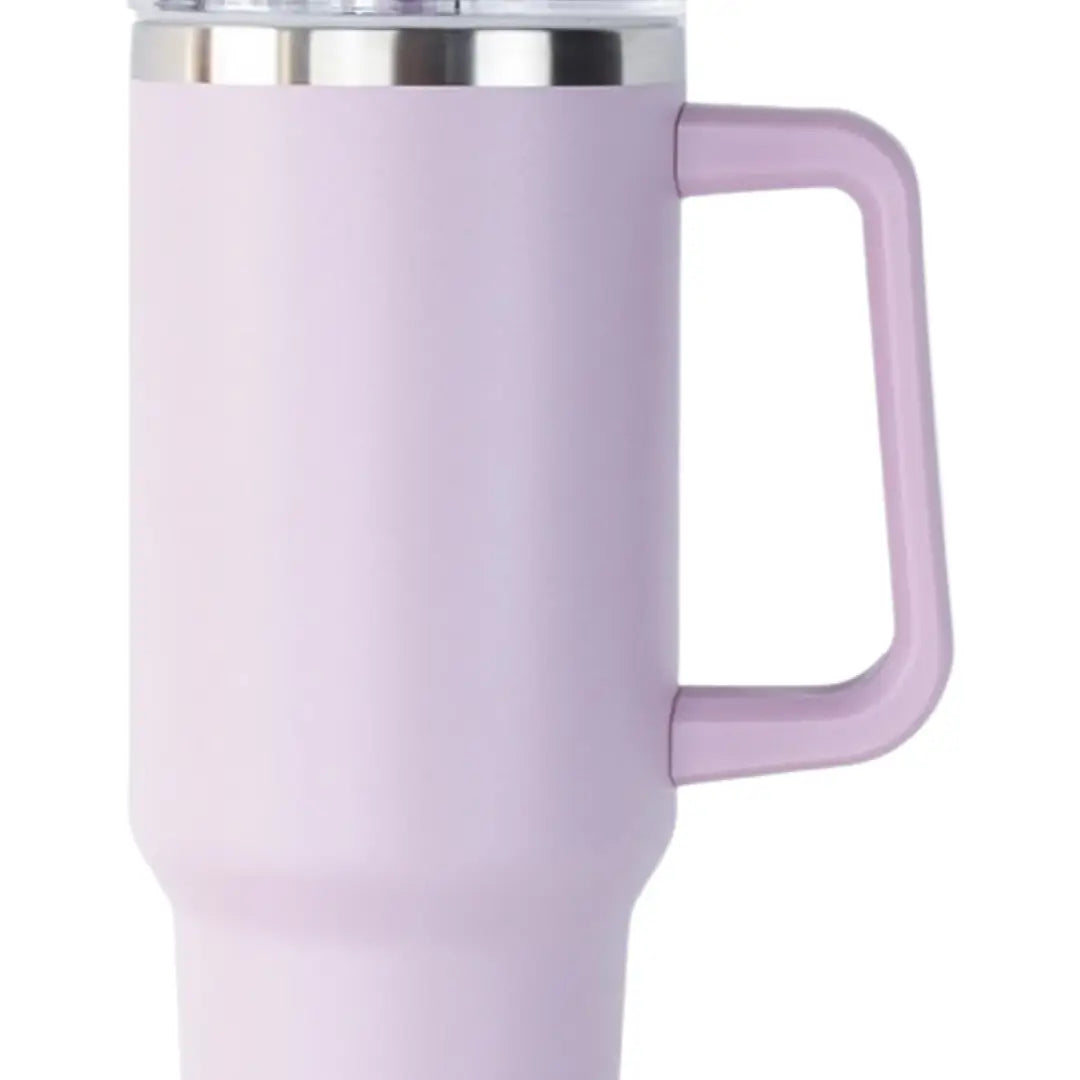 This Tumblr offers maximum hydration with fewer refills! Commuting, studio workouts, day trips or your front porch—you’ll want this tumbler by your side.The ergonomic handle includes comfort-grip inserts for easy carrying, and the narrow base fits just about any car cup holder. The perfect cup to keep you hydrated all summer long! 40 oz stainless steel tumbler.